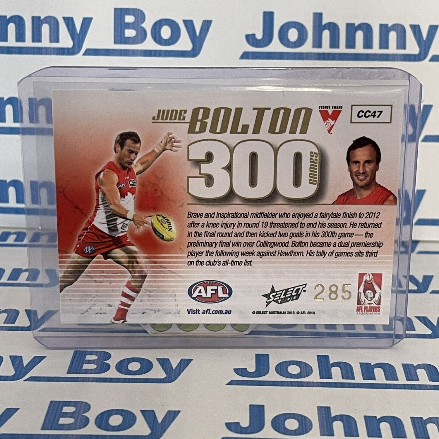 2013 AFL Select Champions 300 Game Case Card Jude Bolton CC47 #285 Sydney Swans
