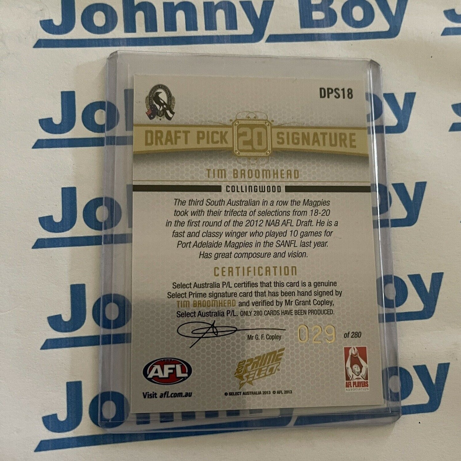 2013 AFL Select Prime Tim Broomhead Draft Pick Signature Collingwood DPS18 029