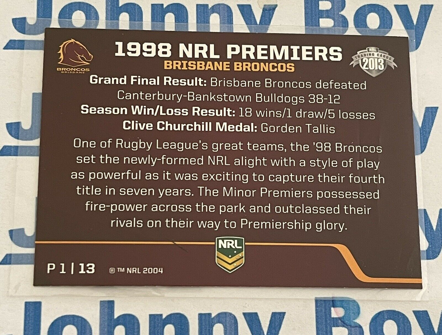 2013 NRL Traders Premiership Series P01/13 1998 Brisbane Broncos