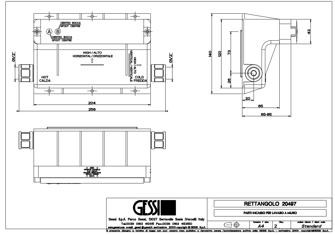 Gessi Rettangolo Internal Mixer Assembly 20497 For 20485. 21785, 21985
