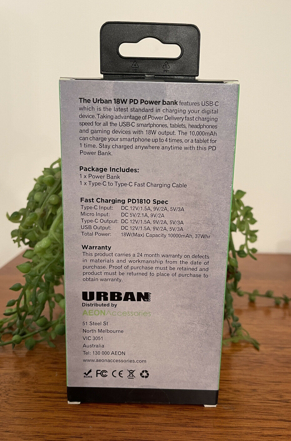 Urban PowerBank 18W 10,000mAh Power Bank For iPhone Samsung Tablet Laptops Apple